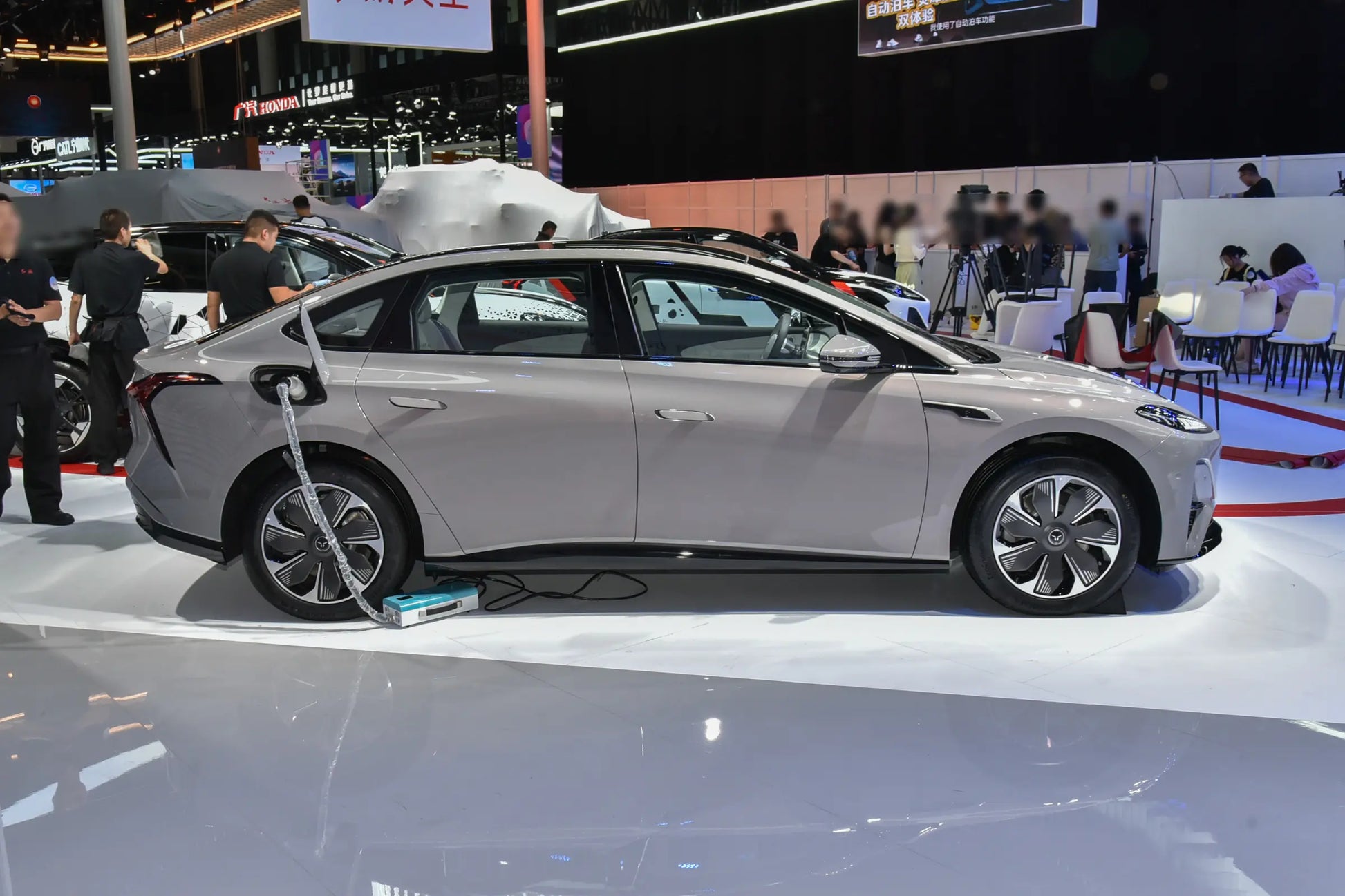 The appearance of the Hongqi Tianggong 05 is eye - catching. The white model in the exhibition hall is elegant and generous, while the blue model I test - drove looks fashionable and dynamic. Both colors have their own charm and are very beautiful.