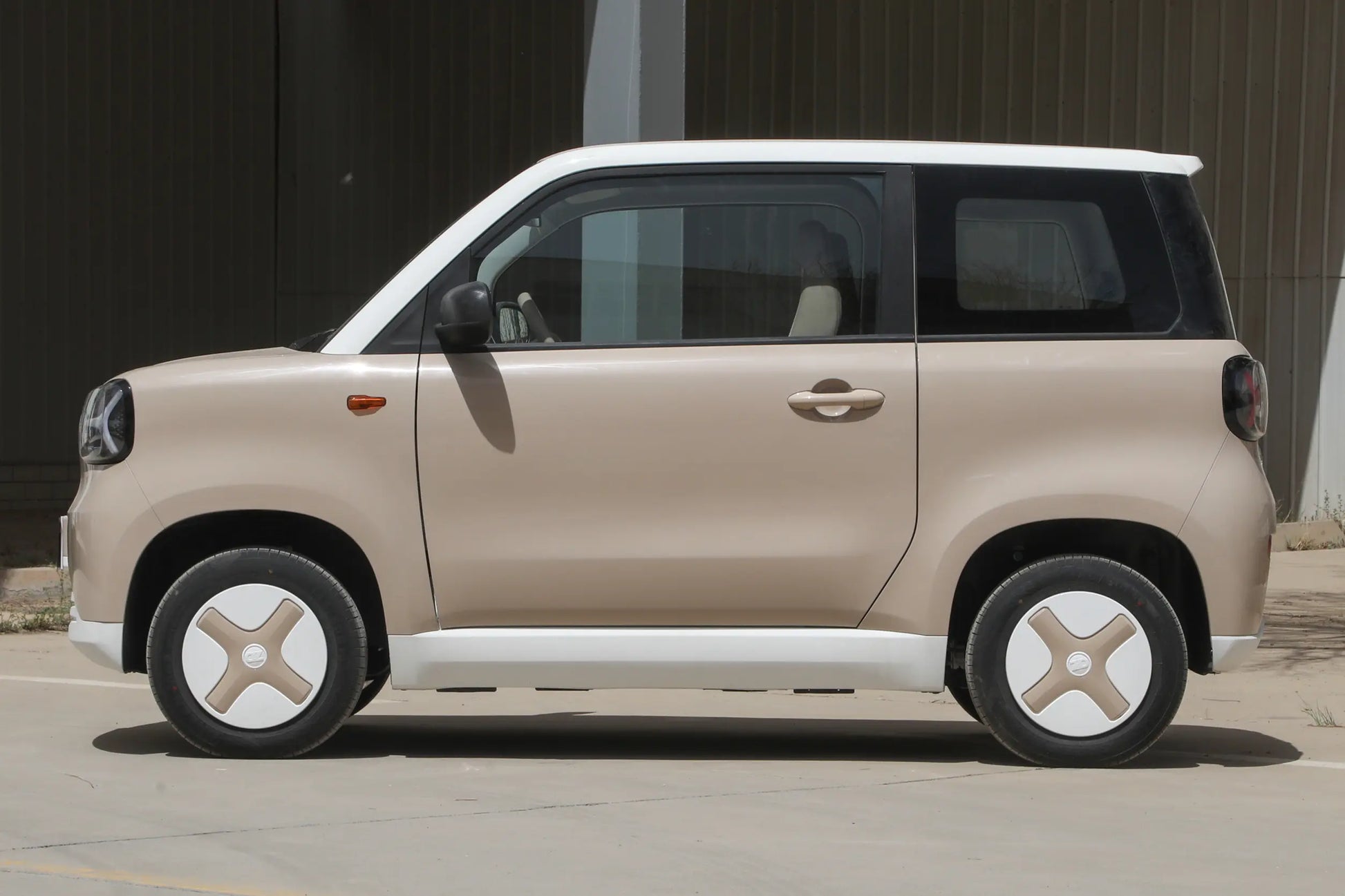 The exterior design is very fashionable and cute, with a relatively round overall shape. The front of the car is equipped with "Y" - shaped LED headlights, which are really eye - catching. The side lines of the car body are smooth, and it is paired with cross - patterned contrast - colored wheels, full of a sense of fashion.