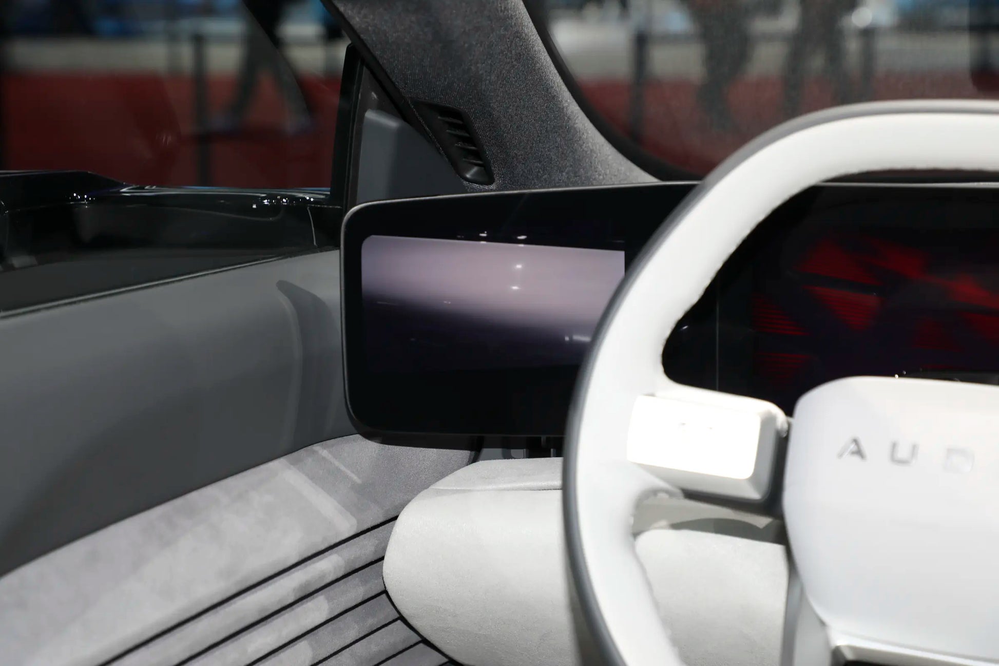 I really love the lavender color of the exterior. It gives a very warm feeling, and it seems that no other brand has used this color combination so far. When looking at it from the front, it actually doesn't look like an Audi at all. Without the "constraint" of the hexagon and the four rings, the only thing that can show it's an Audi is its sharp lights, which the official calls the "Circular Star Diamond Light Curtain". Paired with the illuminated "AUDI" logo, it looks very technological. In addition, this car is also equipped with hidden door handles. What's curious is its ultra - clear electronic exterior rear - view mirror, which replaces the traditional rear - view mirror. It is said to be able to broaden the field of vision and reduce blind spots, but this remains to be evaluated by subsequent car owners.